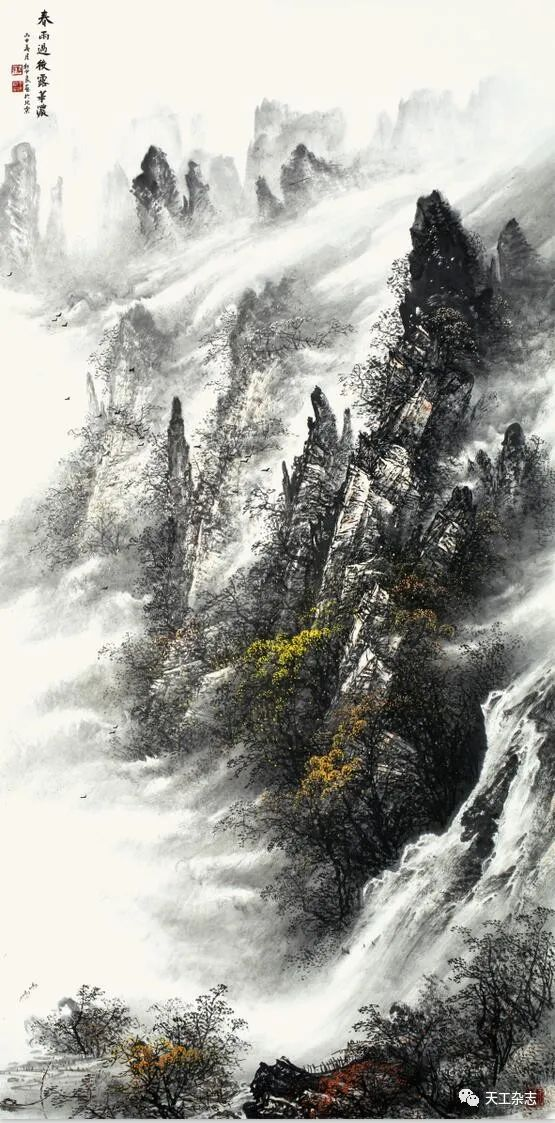 杜中良先生的山水画早已摆脱随类赋彩的单纯技巧,升华至随意赋彩的境界,以情而动人!